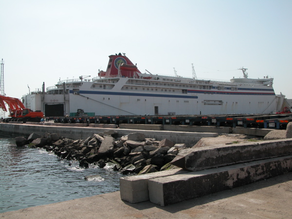 午飯後我們從旁邊的統一路回到市中心,本想下午到劉公島遊覽,可是發覺每天原來只有早上一班航班!無可奈何並看到有渡輪到韓國仁川之情況下,我突然想出利用這些時間去打聽帶車出境到韓國旅遊的手續,先我走到去客運碼頭的售票處,從威海到仁川的單程的最經濟票價是1300元,航程15個小時,客輪由韓國“威東航運公司”(https://www.weidong.com)經營,每周3班,逢周二,四,日出發。至於車方面的托運因涉及到他們的貨運業務所以我直接到他們旁邊的辦公大樓咨詢。接待我的是貨運部的一位經理,我簡單地介紹我的要求後他說他們的客輪可以為我服務,原來以前他們也為過很多來中國自駕車旅遊的韓國遠征車隊做過汽車來回托運服務,不過國內的車想托運出國的咨詢,他是第一次聽到。