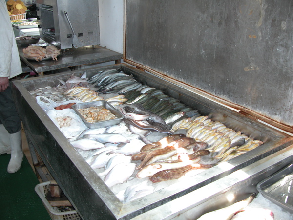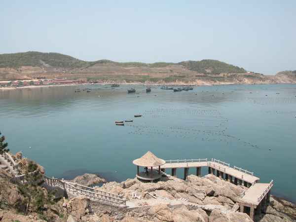 走到那里的陽台就看見一望無際的黃海,雖然當天的氣溫比較熱,但海邊仍是涼風陣陣,建築物下的懸崖還有一個失修殘舊的涼亭,走下去後我們發現附近有兩對情侶光天化日下在附近的石暗礁內偷情!相信那兩台北京車就是他們的了。離開這里後我們又走到另一個漁村,那里正在釣魚的人看過我們的車後問我們是否廣東人然後就聊起來,他們在這里釣到的都是小小的左口魚,釣魚也只不過是他們消磨時間的玩意。差不多午飯的時間,我們來到了葡萄灘海水浴場岸邊的一家海鮮菜館吃飯,又再吃一頓海鮮,店內的老板娘帶我們看他們所有的海鮮品種讓我們選擇,一大盆扇貝青口才15元,開水一煮馬上可以吃,另外還有紅燒魚,騾片等等,埋單100多元。