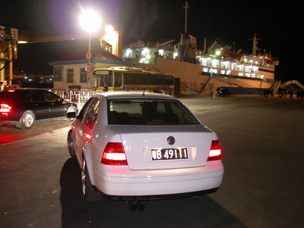 來到碼頭,其他車都在排隊上船,只有司機一人憑票才可以把車開進去,韓勇則在碼頭等我。停車好,床位找好,我和韓勇就在甲板上漫步抽煙,吹吹海風,遺憾是大家身邊都少個妹妹,頓時覺得十分鬱悶。由於回程上海時候我們會開車經過北京,我馬上發手機SMS給北京的朋友“李峰”問他有否時間大家可以聚一下,李峰是國內資深的駕車探險家,曾駕駛一輛Opel環遊世界,我們相約好在北京見面吃飯。回去仔細看看床位,條件不是很好,8人一個包廂,同房的兩個家庭都是正在自駕車旅行,大家於是聊起來,交流了大家駕車旅遊的經驗,他們一個是北京的,一個是黑龍江的,原來大家來威海前所走的路線都差不多,談笑間我又增進了不少經驗。