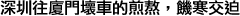 由於“春運”已過,“深汕公路”十分好走,加上大部分路段都剛重新舖好,沒有阻濟。約下午1時已到潮州,午餐就在服務區內解決,4菜1湯,只需68元,味道很好。再上路經過汕頭大橋再過饒平就離開了廣東省進入福建。一路都順利的車程竟然可以一息間變化。福建的公路可能因為是新建造和嚴格限制重型車輛通行,明顯比廣東段好。下午3時許,距離廈門200公里。我們就在服務區內加油。之後就馬上開車行了,5分鐘後車上行車電腦突然鬧起黃色警報要求檢查機器,馬上將車停靠路邊避車處熄火下車,打開車頭蓋看看又未有發現任何異樣,可是再次發動引擎的時候行車電腦仍然發出檢查機器的警報。